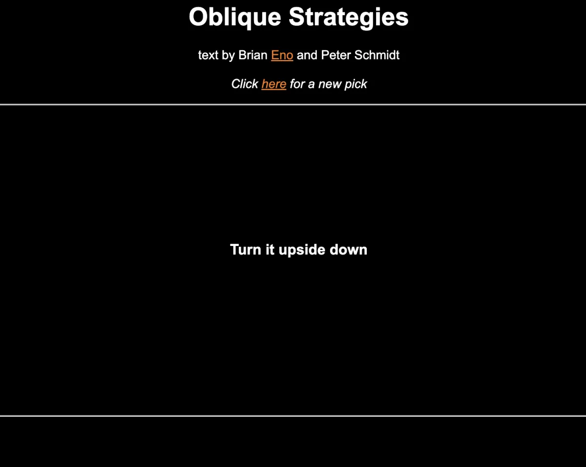 This is a online version of a physical card pack you can purchase with general creative challenges made to get you to challenge your thinking - https://stoney.sb.org/eno/oblique.html